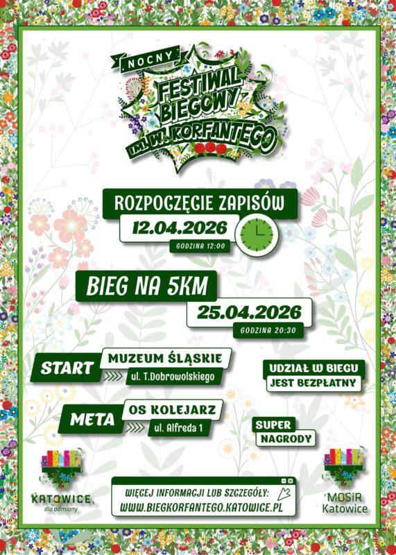 Są wydarzenia, które mają swój niepowtarzalny klimat i do nich bez wątpienia należy tzw. bieg Korfantego. Gdy miasto zwalnia, a ulice rozświetla wieczorne światło, Katowice nabierają zupełnie nowego rytmu. 25 kwietnia odbędzie się Nocny Festiwal Biegowy im. Wojciecha Korfantego – bieg, który łączy aktywność fizyczną z wyjątkową atmosferą miasta po zmroku i jest częścią większego, festiwalowego wydarzenia obejmującego również biegi dla dzieci zaplanowane na 14 czerwca.
