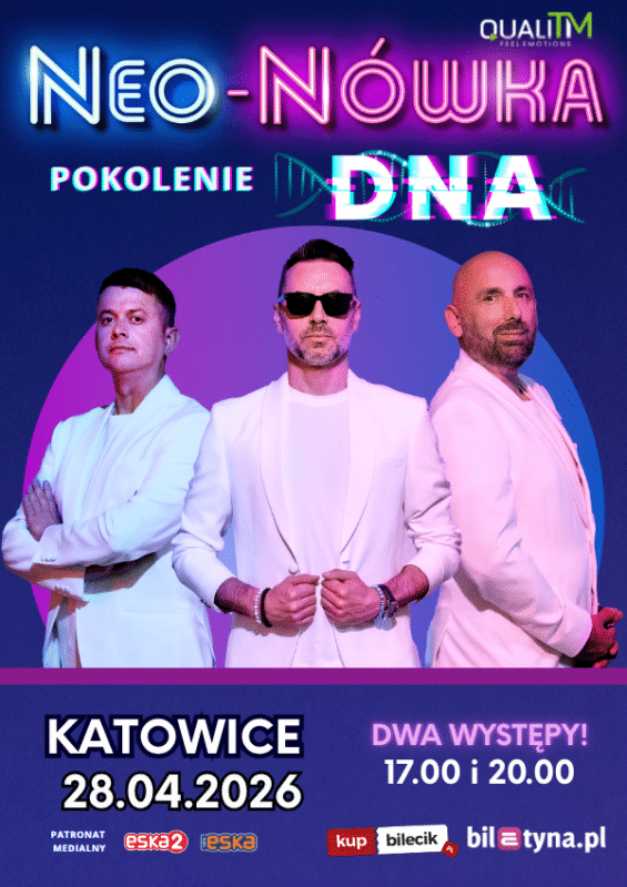 Już 28 kwietnia 2026 roku w Katowicach wystąpi popularny Kabaret Neo-Nówka z nowym programem zatytułowanym „Pokolenie DNA”. Wydarzenie odbędzie się w przestrzeni Katowice Miasto Ogrodów, a artyści zaprezentują się dwukrotnie – o godzinie 17:00 oraz 20:00.