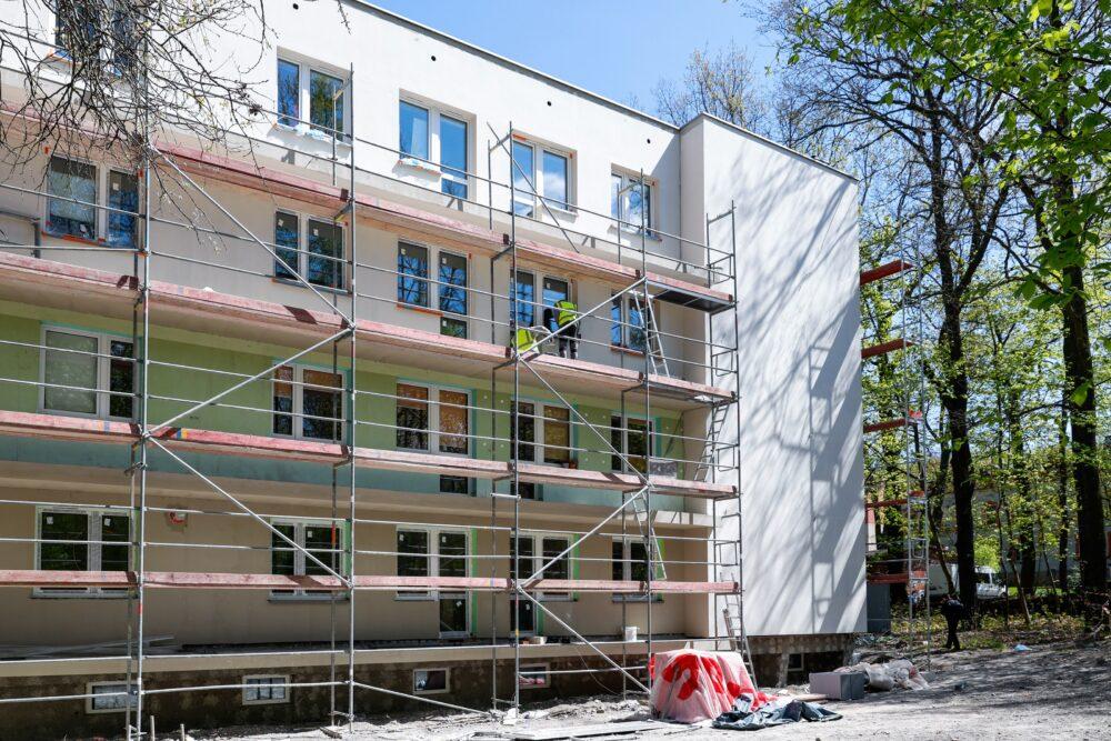 Remont – nadzorowany przez miejską spółkę Katowickie Inwestycje S.A. – jest zadaniem o tyle trudnym, że w budynku cały czas przebywają pacjenci, którzy w tym tygodniu musieli zostać przeniesieni z I na III, świeżo wyremontowane piętro. Właśnie dlatego wykonawca nie może jednocześnie prowadzić działań w całym obiekcie – jedno z pięter musi pozostać do dyspozycji personelu i chorych, trzeba także szczególnie uważać, by nie narażać bezpieczeństwa osób odwiedzjących pacjentów.